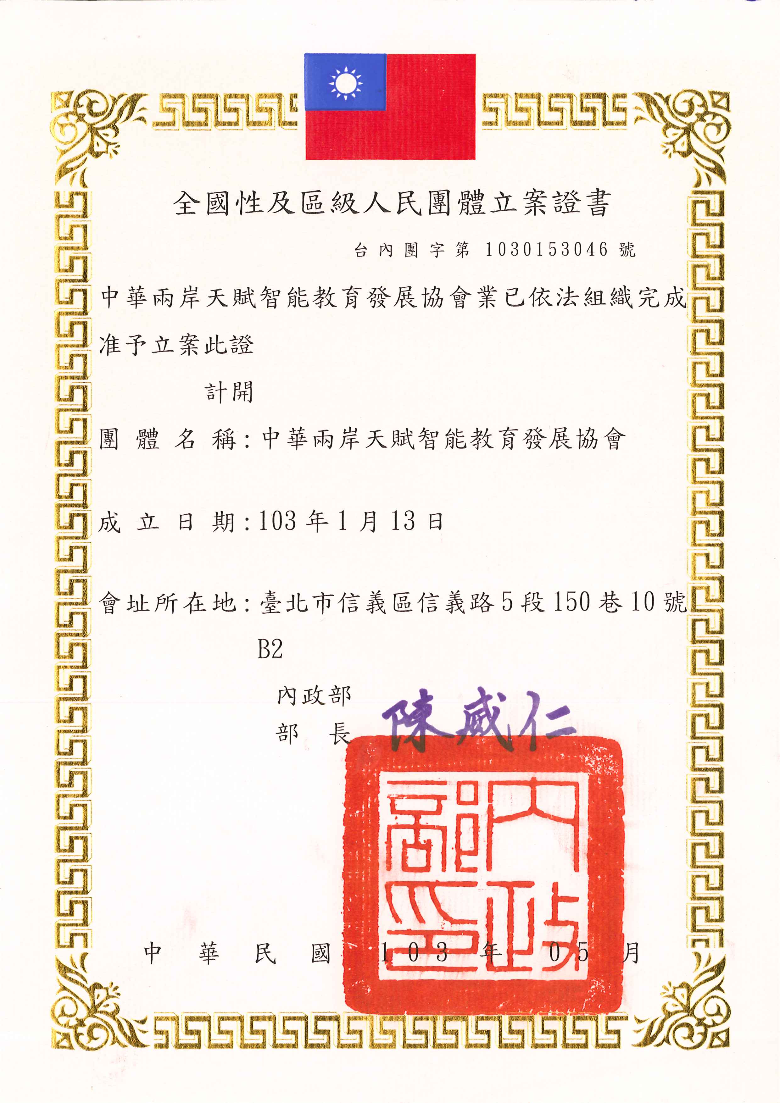 協會成立案證明書