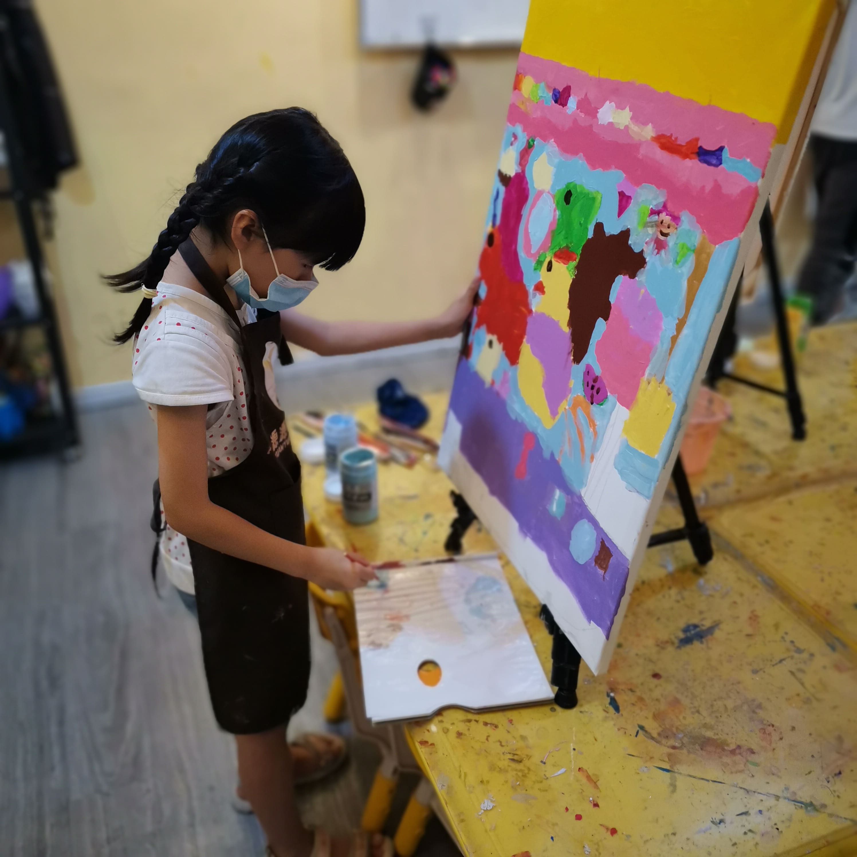 带着小女儿去上画画课