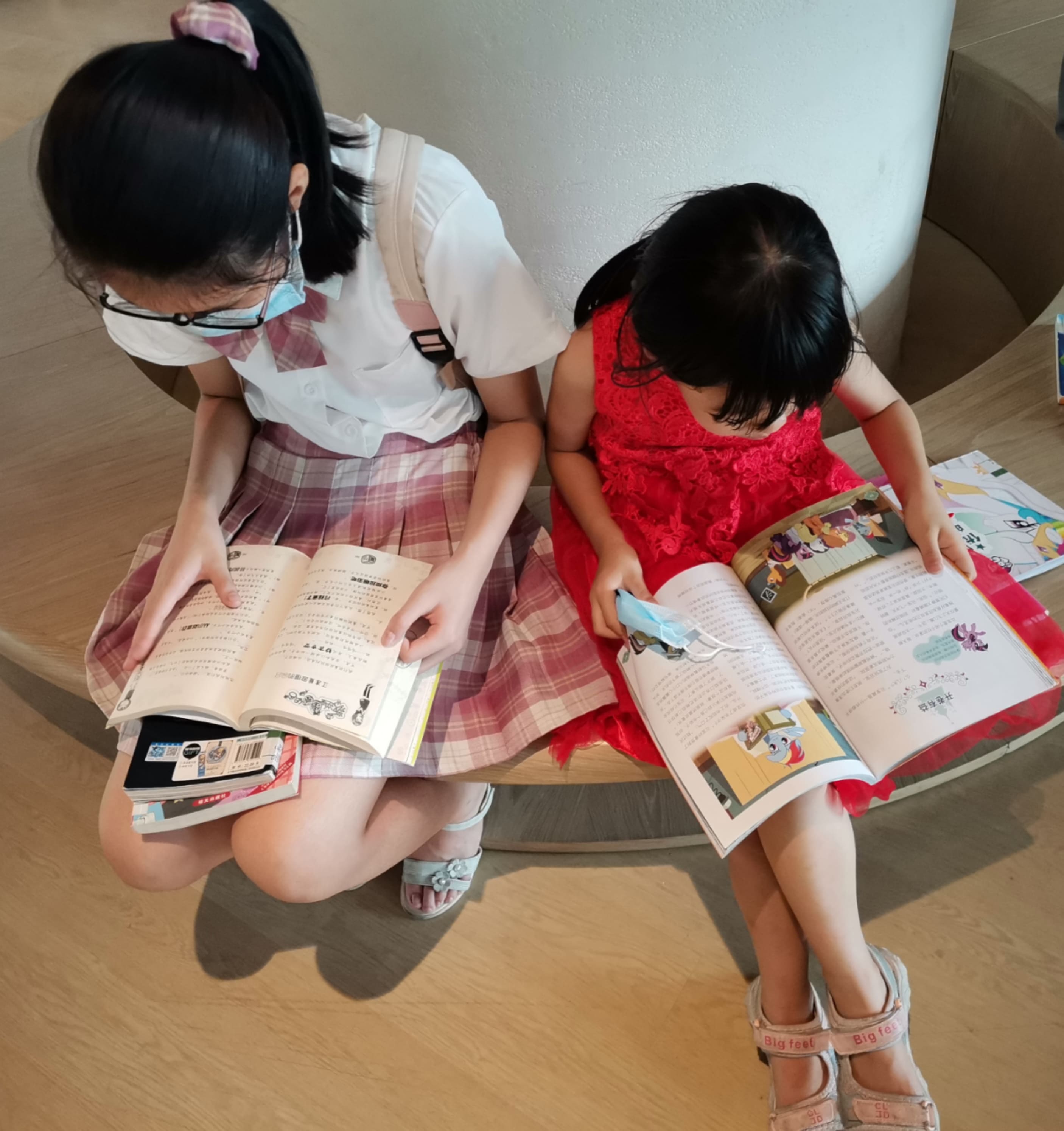 姊姊跟妹妹难得静下心在读书馆待了一下午
